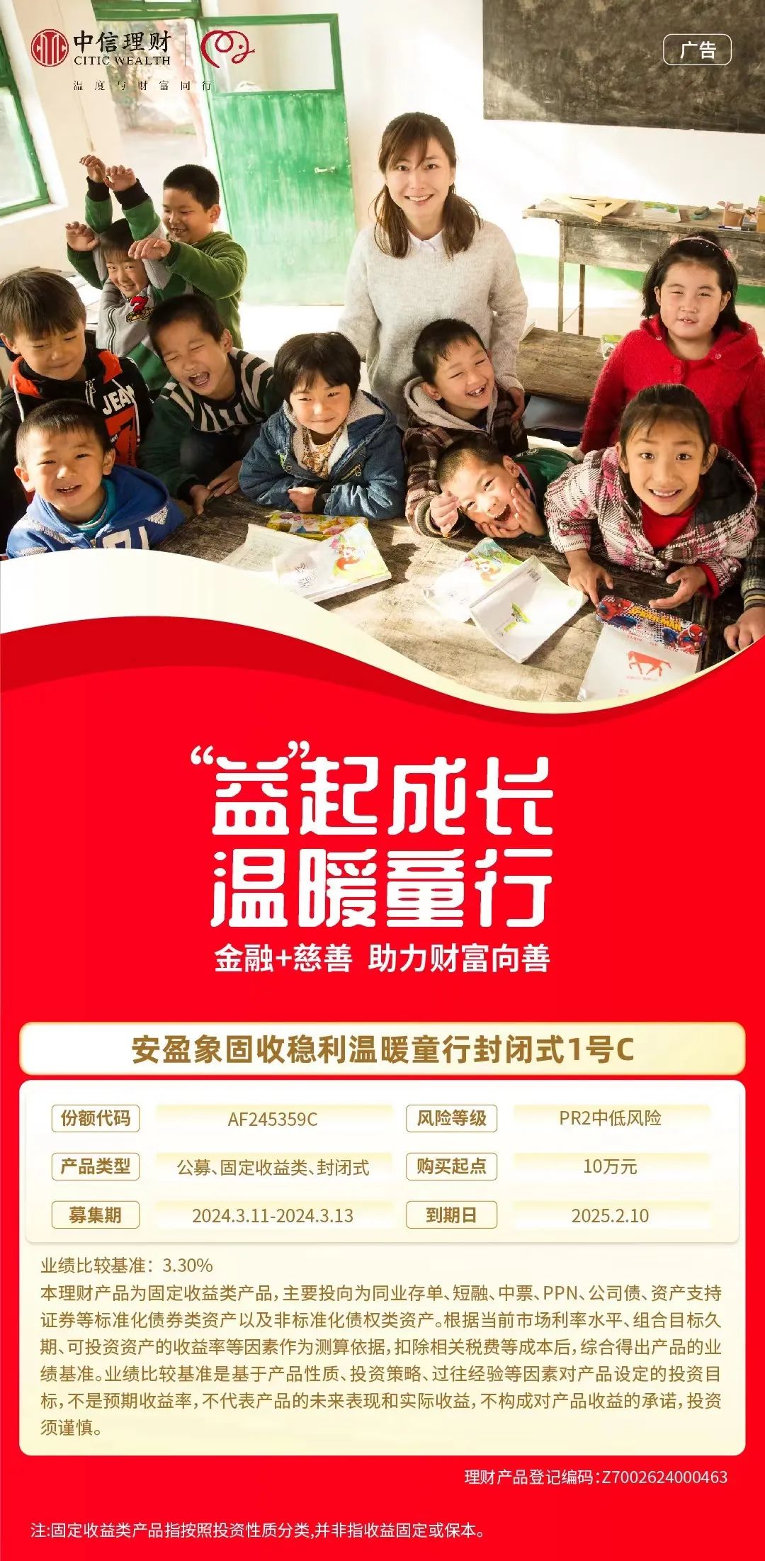 为有力更好地发挥爱心在三、次确定和健全完善三部分生活得到保障制度的注重能力,思考财务资本大力支持爱心自己事业發展的新策略,通畅生活双方组织爱心和生活救治的原则,制造“爱心+财务资本”新很常见的事了,拓展运动爱心募捐原则,聚集善的潜能、善的思想、善的情形。2024年3月11日,中信银行股份有限公司成都分行联合信银理财有限责任公司、四川省慈善联合总会成功发售四川省首款儿童关爱类慈善理财产品,3月14日正式成立起息,产品的落地发行旨在创新探索“慈善+金融”新路径,让慈善传递财富温度。