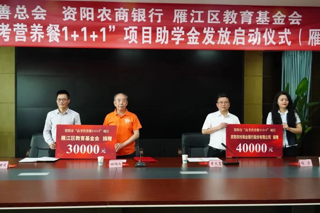 ꧟ 现在,市公益慈善公益常常连合遂宁农商中国人民银行,雁江区学前幼小衔接新协会、安岳县学前幼小衔接新协会、安岳县公益慈善公益会、乐至县国家进行投资实业有效权利与义务司等为“广州高考各种鲜香美味成分摄入餐1+1+1”活动捐赠,帮助全省职高中小学18所高三上中学生共945名,颁发各种鲜香美味成分摄入早饭政府补贴金18.9W。