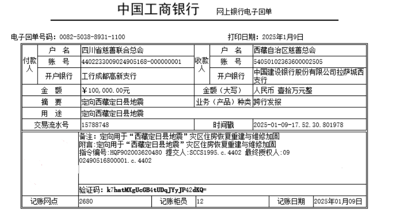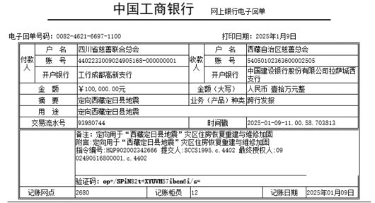 山水相连 川藏同心——四川省慈善联合总会携手会员单位支援西藏地震灾区