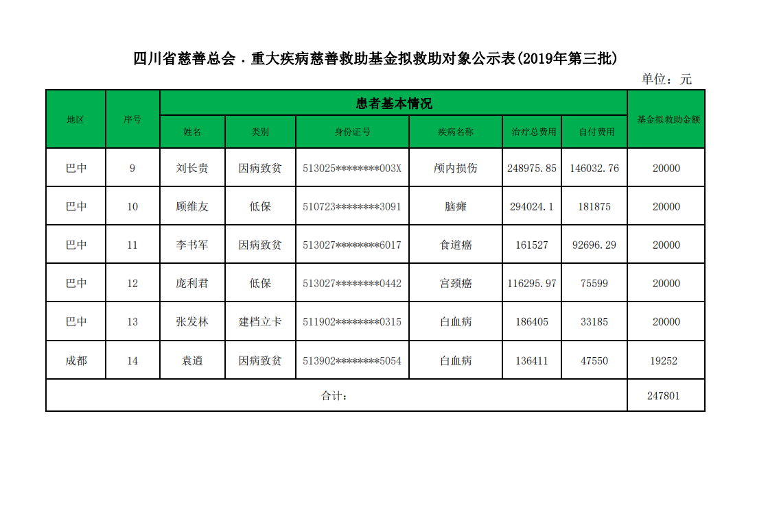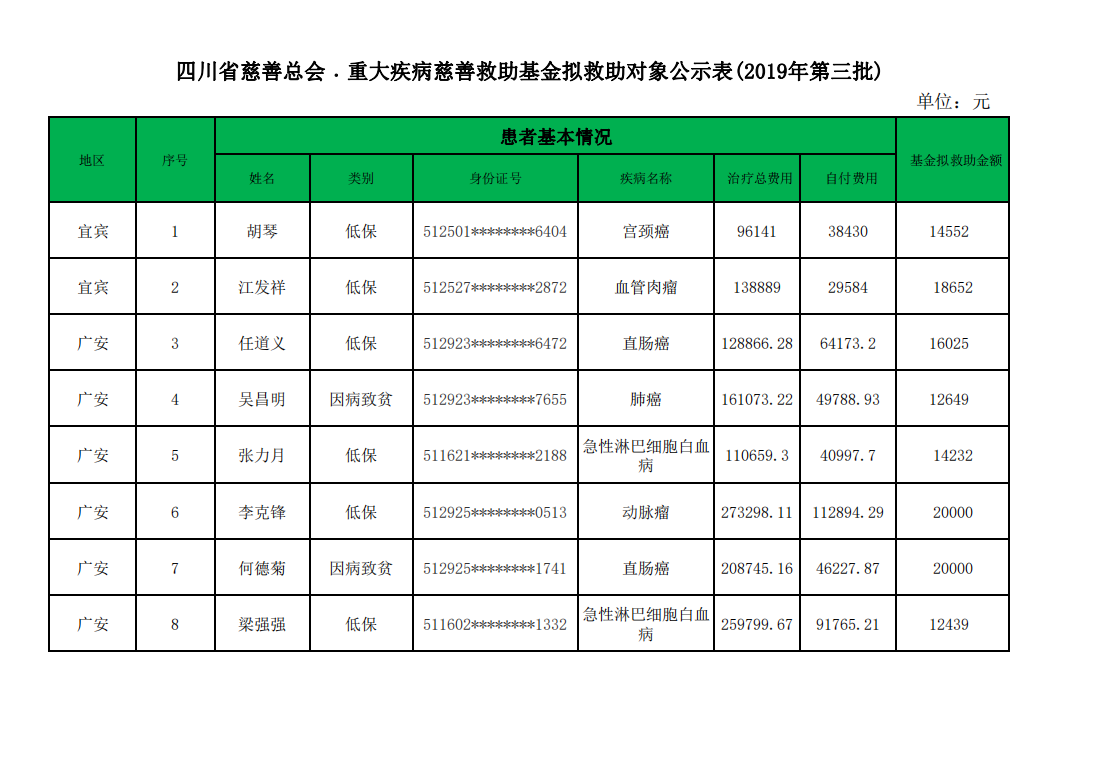 四川省慈善总会 重大疾病慈善救助基金2019年(第三批)援助对象公示