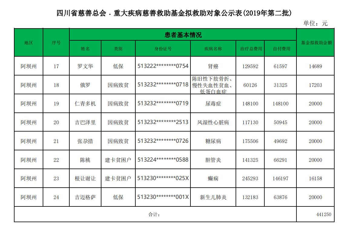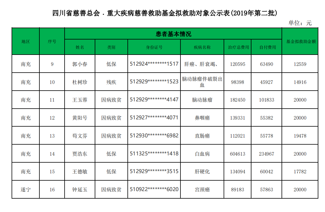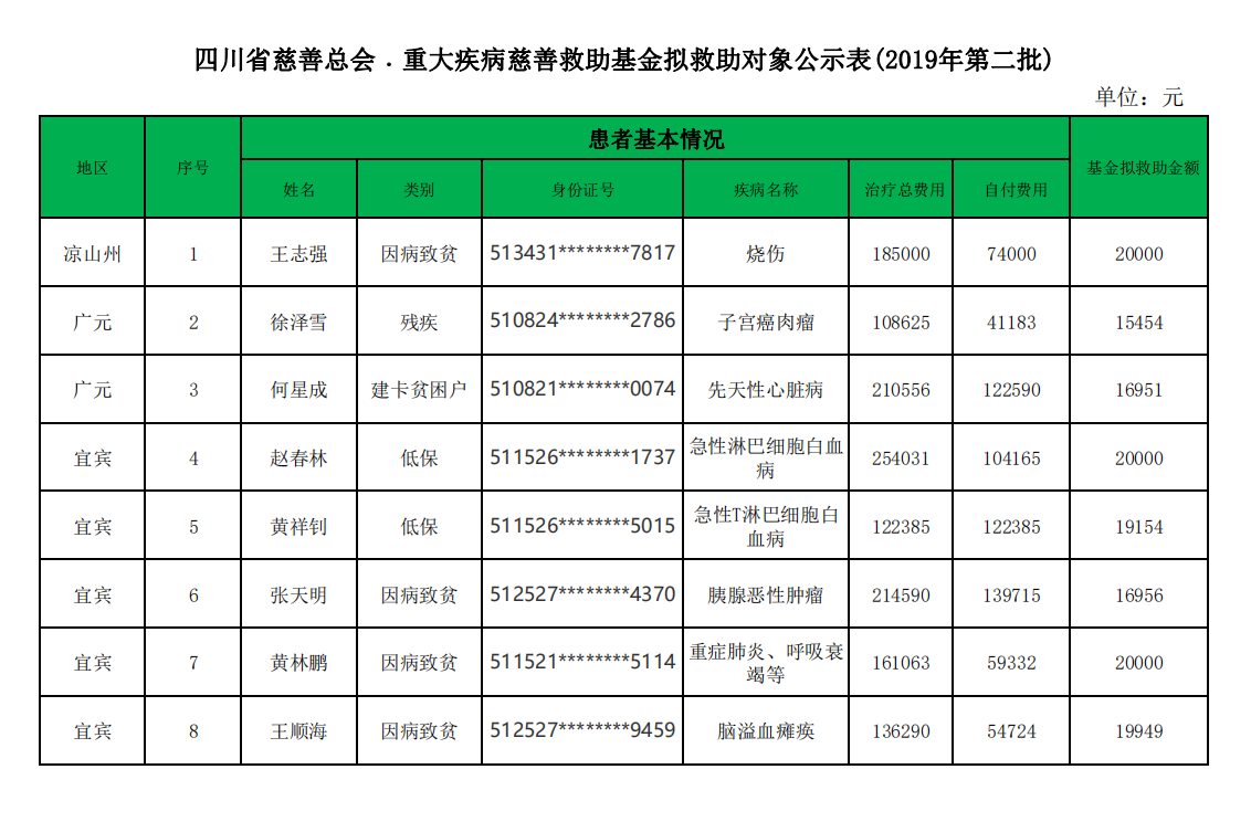 四川省慈善总会·重大疾病慈善救助基金拟救助对象公示表